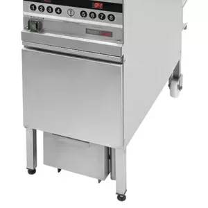 Фритюрница RoboLabs RoboFry EF (на заказ) предназначена для приготовления различных продуктов в большом количестве масла на предприятиях общественного питания и торговли. Модель установлена на открытом стенде с 1 полкой, оснащена электро-механической системой управления с регулятором температуры, мощными ТЭНами, аварийным термостатом для безопасной работы и холодной зоной.