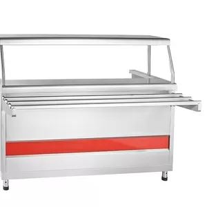 Мармит Abat ПМЭС-70КМ-60 (на заказ) используется в составе линии раздачи Аста для демонстрации, кратковременного хранения и поддержания вторых блюд в горячем состоянии в составе линий раздач на предприятиях общественного питания и торговли. Модель оснащена регулируемыми по высоте ножками. Конструкция выполнена из нержавеющей стали.