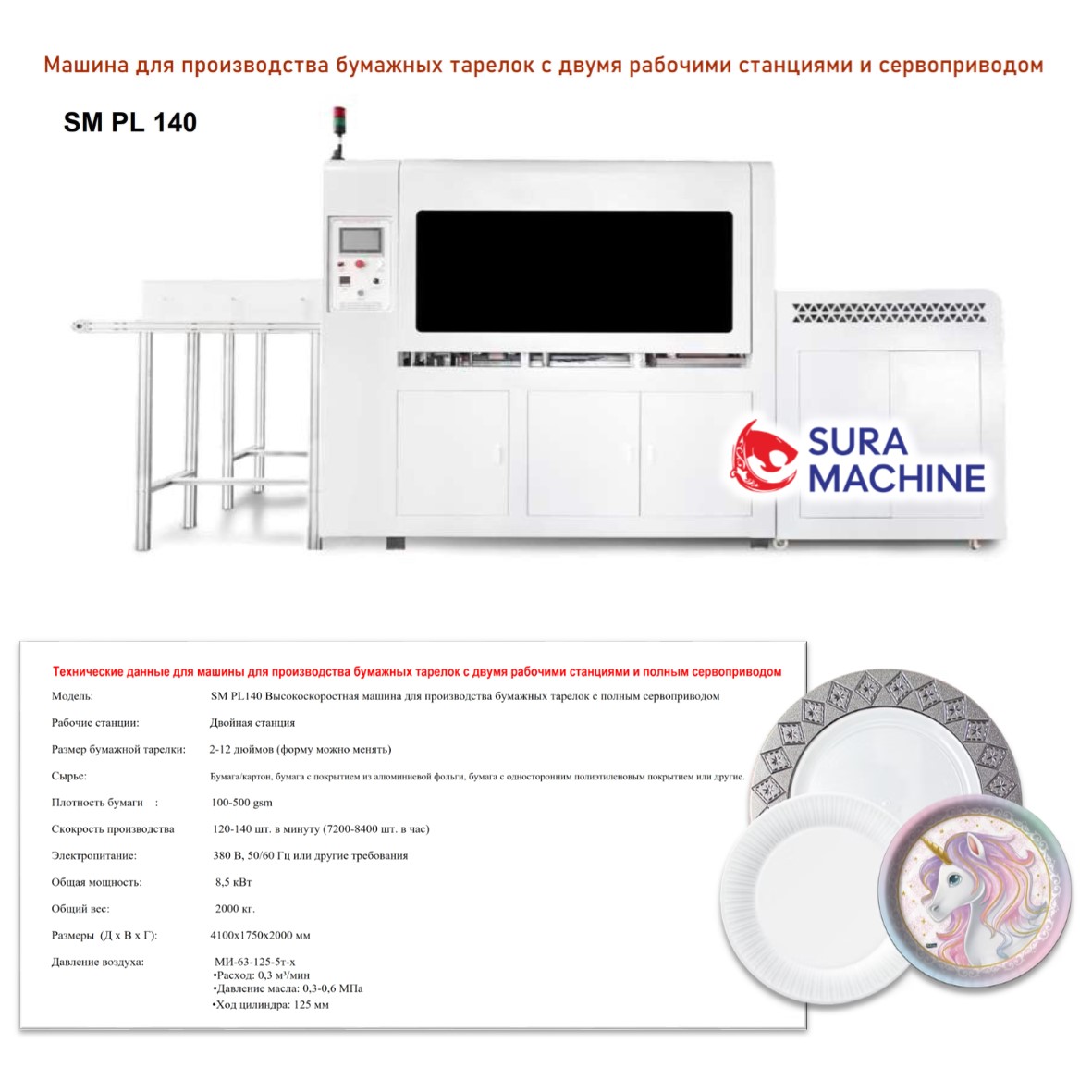 Технические данные для машины для производства бумажных тарелок с двумя рабочими станциями и полным сервоприводом. Высокоскоростная машина для производства бумажных тарелок с полным сервоприводом.