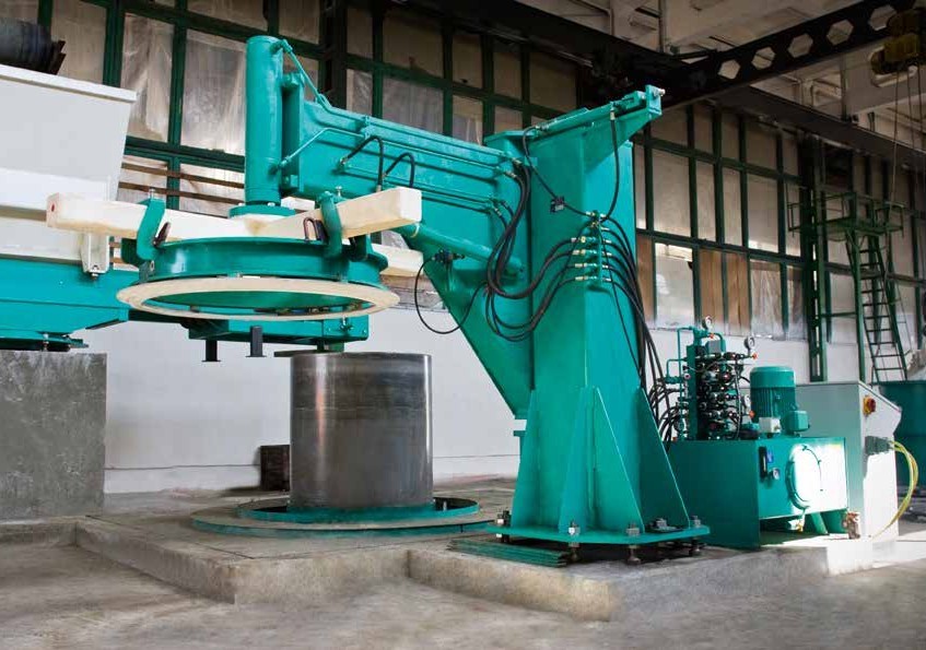 Трубы обычно расформовываются и транспортируются с помощью мостового крана. Прессовочное/качающее устройство устанавливается на поворотном рычаге. Для производства труб требуется только 1 оператор.