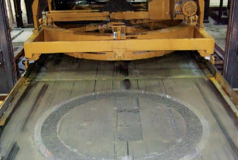 Производственный цикл полностью автоматизирован: бетон подается в форму по бетоносмесительной ленте с распределителем, изделие уплотняется синхронизированной вибрацией, а верхняя часть изделия обрабатывается пресс-головкой, выполняющей комбинацию прессующих и колебательных движений.
