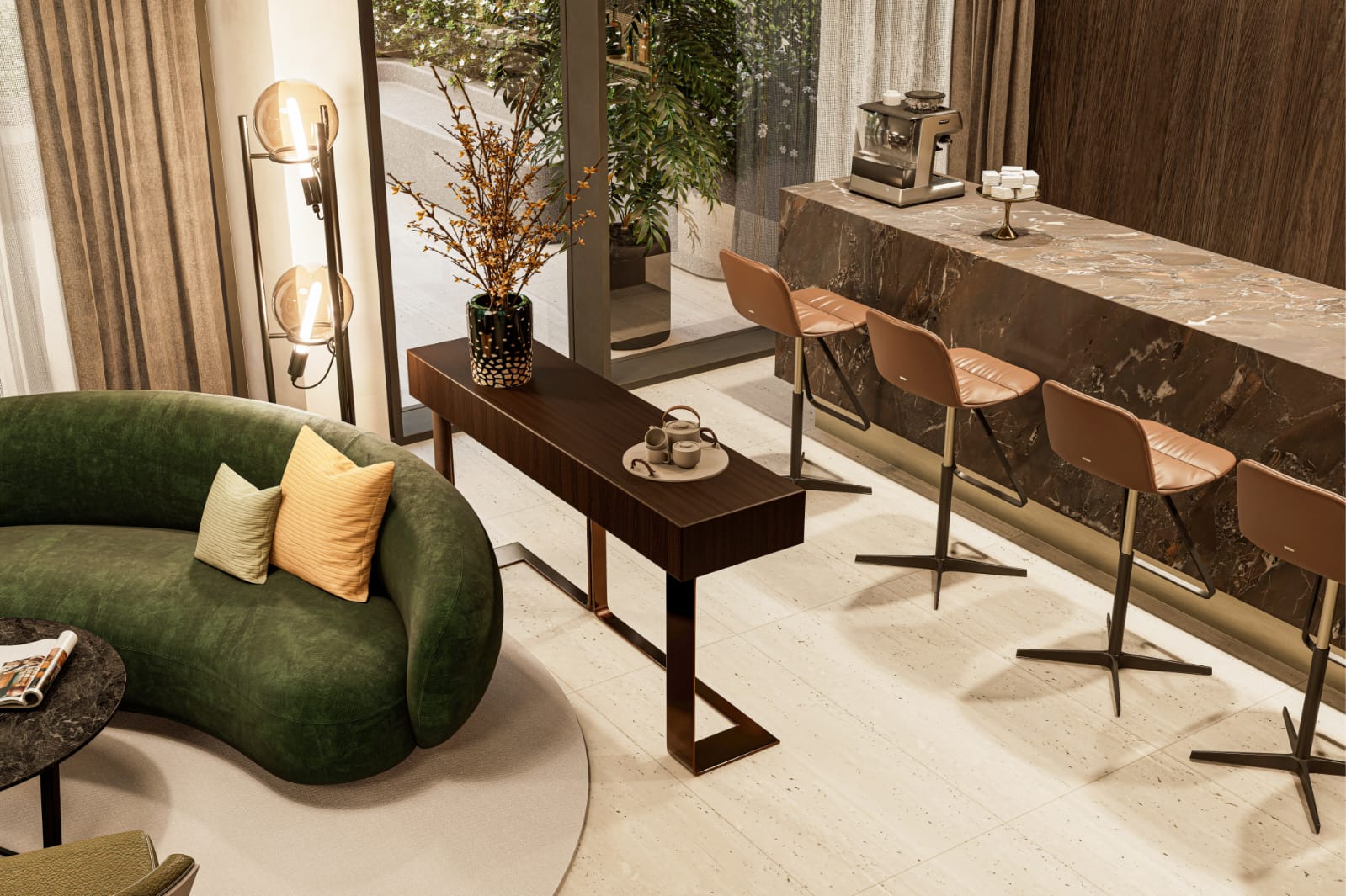 * Просторное дизайнерское лобби с ресепшн и баром