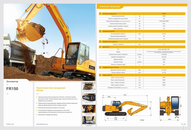 Гусеничный экскаватор FR150, Foton Lovol, пр-во Китай, новый, в наличи